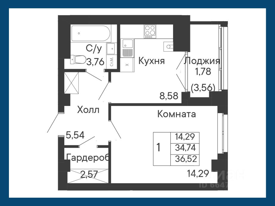 Общая площадь36,52 м²