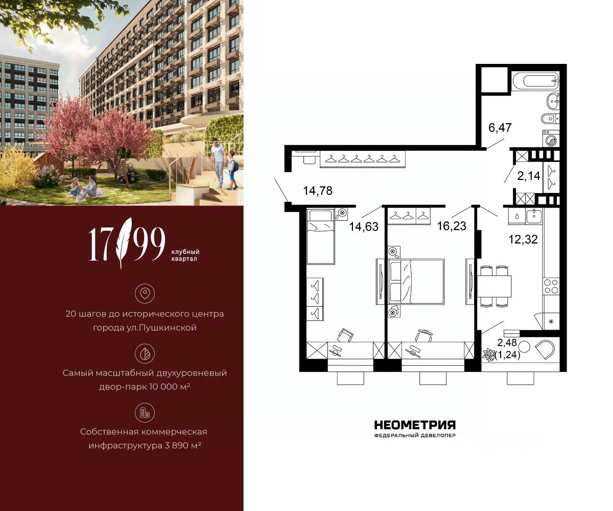 Продается квартира в клубном квартале "1799". Это истинный бизнес-класс в историческом центре Ростова. Особое сочетание уникальной локации и среды, где хочется создавать ту жизнь, которая подходит вам. Где каждое мгновение становится частью семейной коллекции лучших моментов.