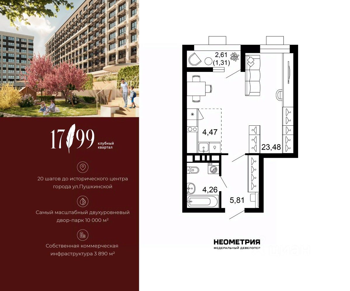 Продается квартира в клубном квартале "1799". Это истинный бизнес-класс в историческом центре Ростова. Особое сочетание уникальной локации и среды, где хочется создавать ту жизнь, которая подходит вам. Где каждое мгновение становится частью семейной коллекции лучших моментов.