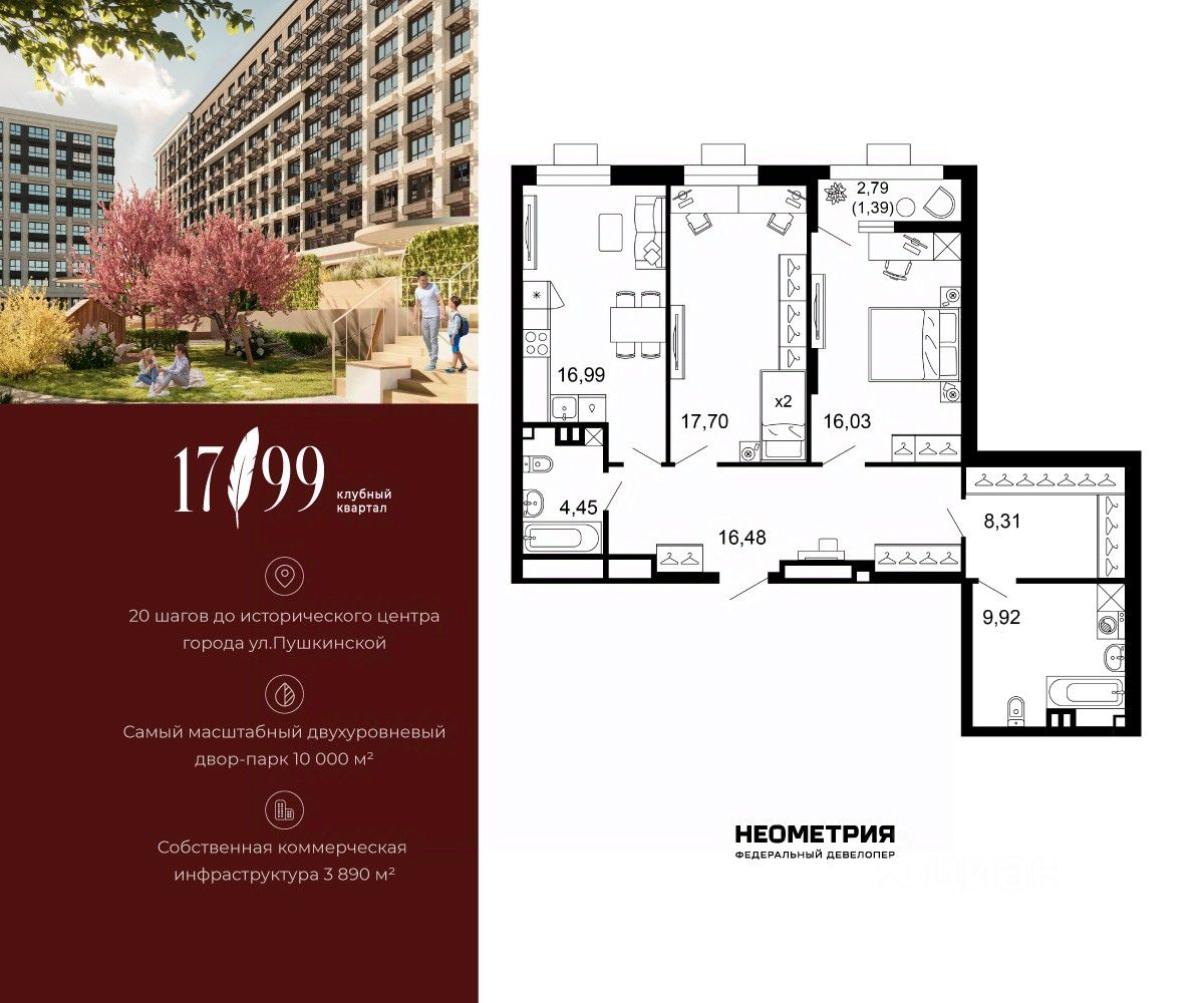 Продается квартира в клубном квартале "1799". Это истинный бизнес-класс в историческом центре Ростова. Особое сочетание уникальной локации и среды, где хочется создавать ту жизнь, которая подходит вам. Где каждое мгновение становится частью семейной коллекции лучших моментов.