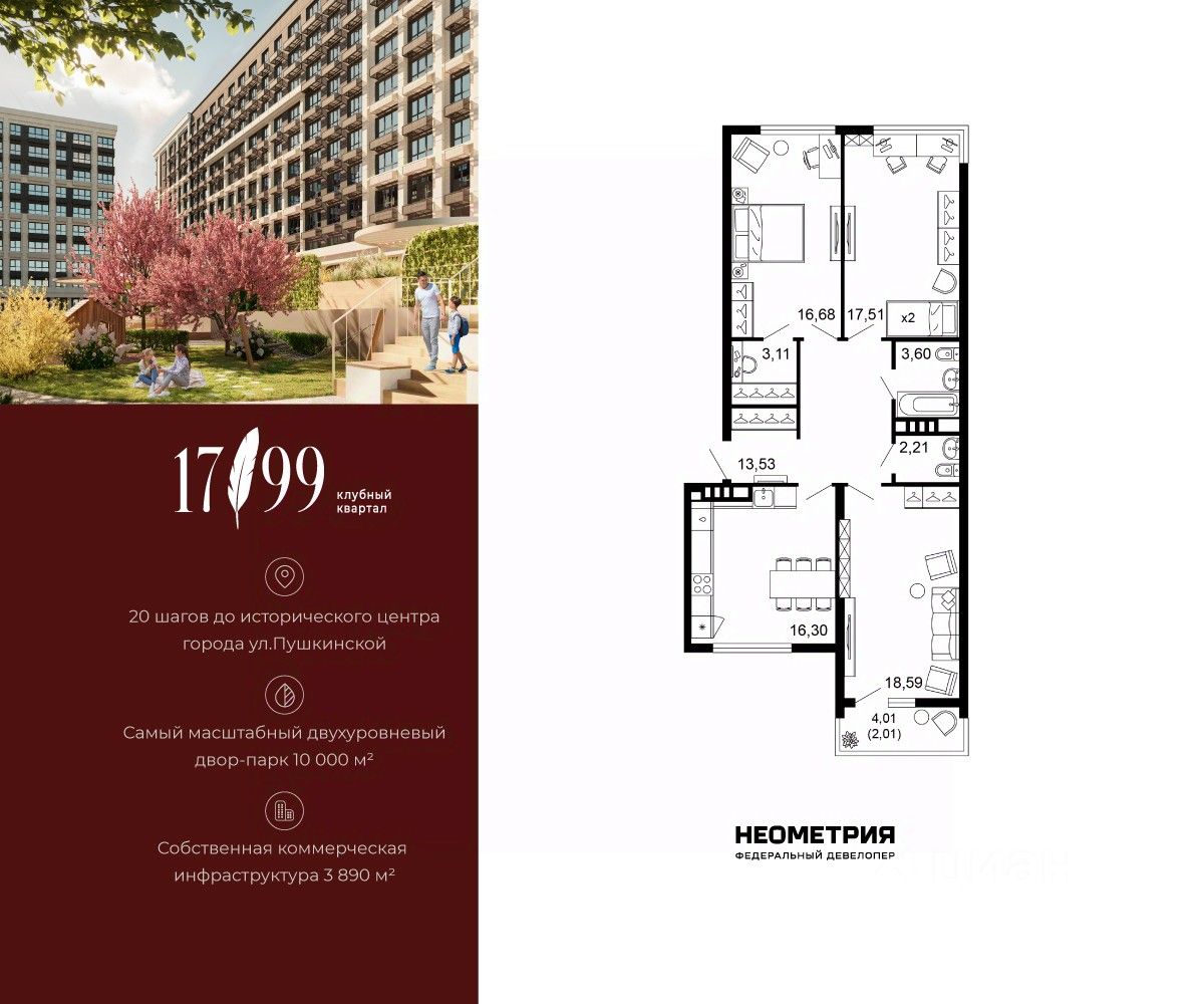 Продается квартира в клубном квартале "1799". Это истинный бизнес-класс в историческом центре Ростова. Особое сочетание уникальной локации и среды, где хочется создавать ту жизнь, которая подходит вам. Где каждое мгновение становится частью семейной коллекции лучших моментов.