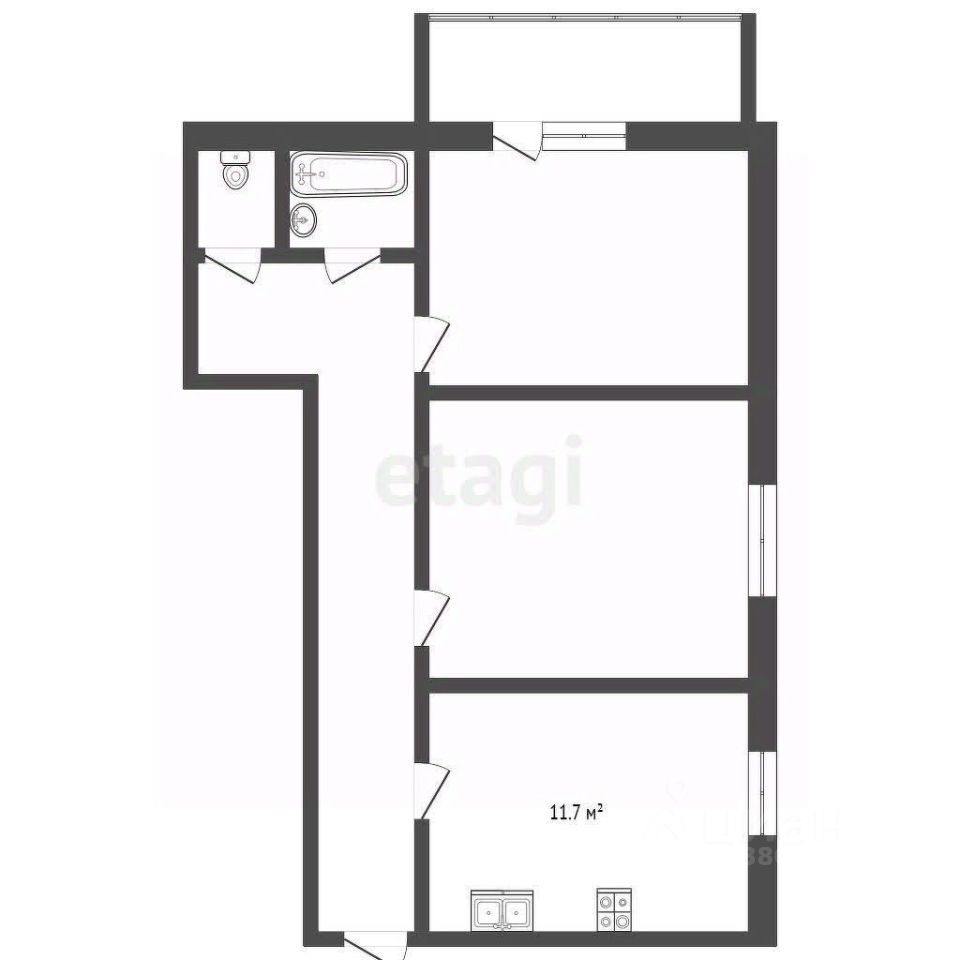 . Комнаты в квартире изолированные . Жилая площадь составляет 32 м², а кухня — 11,7 м² , также раздельный санузел .