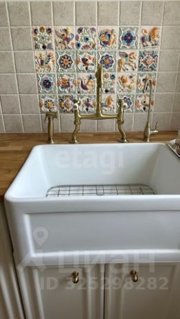 Роскошные детали включают массивные двухметровые двери, отреставрированный оригинальный сталинский паркет, стены с декоративной окраской. В отделке использованы премиальные материалы: керамогранит, изысканная гипсовая лепнина, кухонная мебель из высококачественного МДФ. Особую атмосферу создает авторская роспись на потали в гостиной, дополненная элегантными латунными элементами.