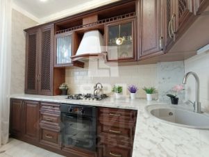 В квартире остаются шикарная кухня со встроенной техникой, кондиционер.