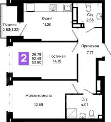 Продается 2-комн. квартира, площадью 53.8 кв.м. Возможен вариант покупки с использованием ипотечных средств.