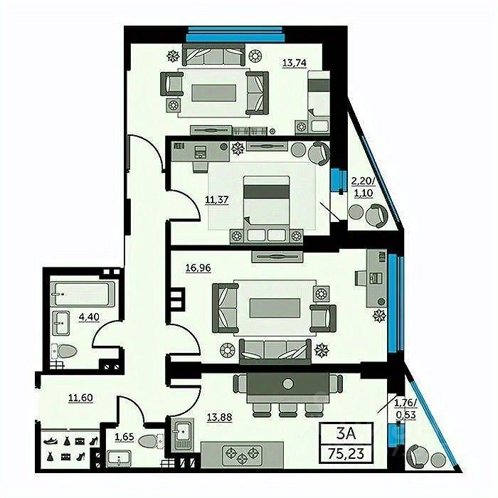 Арт. 67130418 Продается Просторная трехкомнатная квартира удачной планировки в ЖК РУБИН.