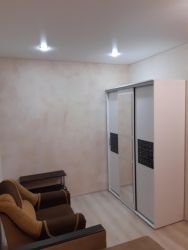 В квартире ремонт, натяжные потолки Просторная комната оснащена кондиционером,пол ламинат. На кухне,коридоре и санузле теплый пол,кафель. Встроенный куханный гарнитур. Санузел совмещенный.