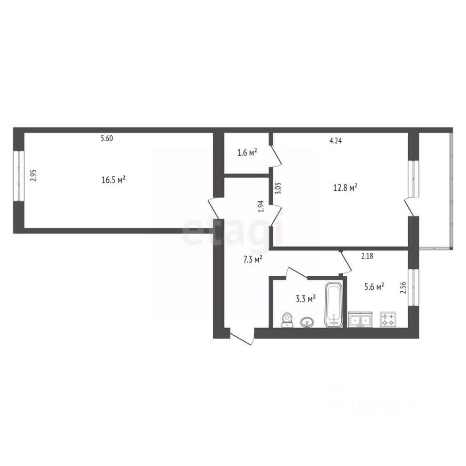 Представляем вам двухкомнатную квартиру общей площадью 47,1 метра квадратного, расположенную на четвёртом этаже пятиэтажного дома.