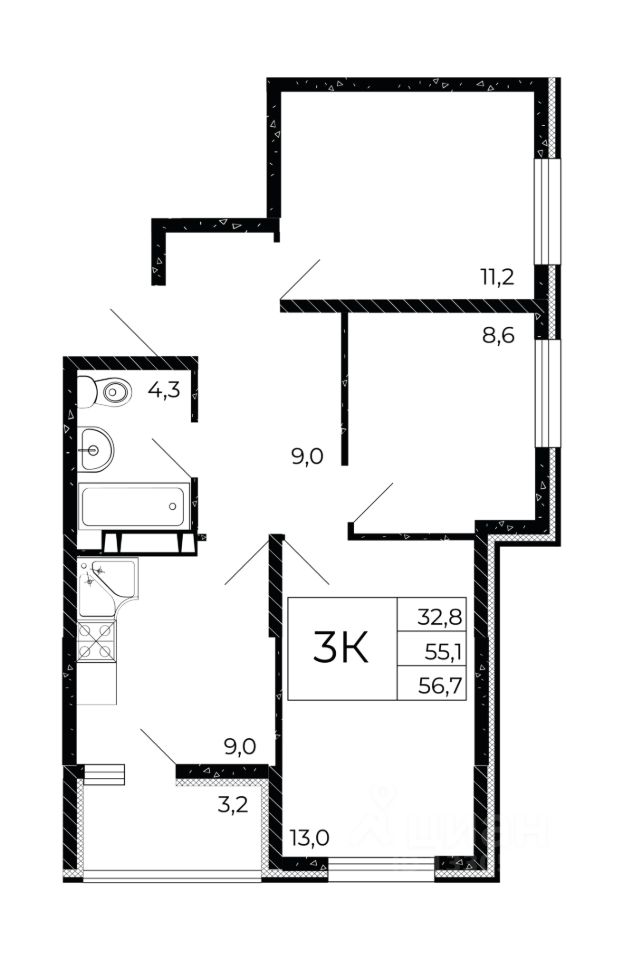 Продаётся 3-комнатная квартира в строящемся доме (Литер 4.1), срок сдачи: IV-кв. 2028, общей площадью 56.7 кв.м., на 2 этаже. Город стремительно развивается. Мы вместе с ним. Инфраструктура города пополняется новыми сервисами и полезными опциями, которые позволяют нам получать всё необходимое рядом с домом.