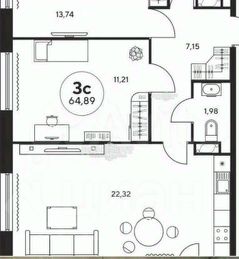 - Площадь: 65 м², современная планировка с кухней-гостиной, которая оснащена двумя окнами и выходом на балкон, создавая светлое и просторное пространство.
