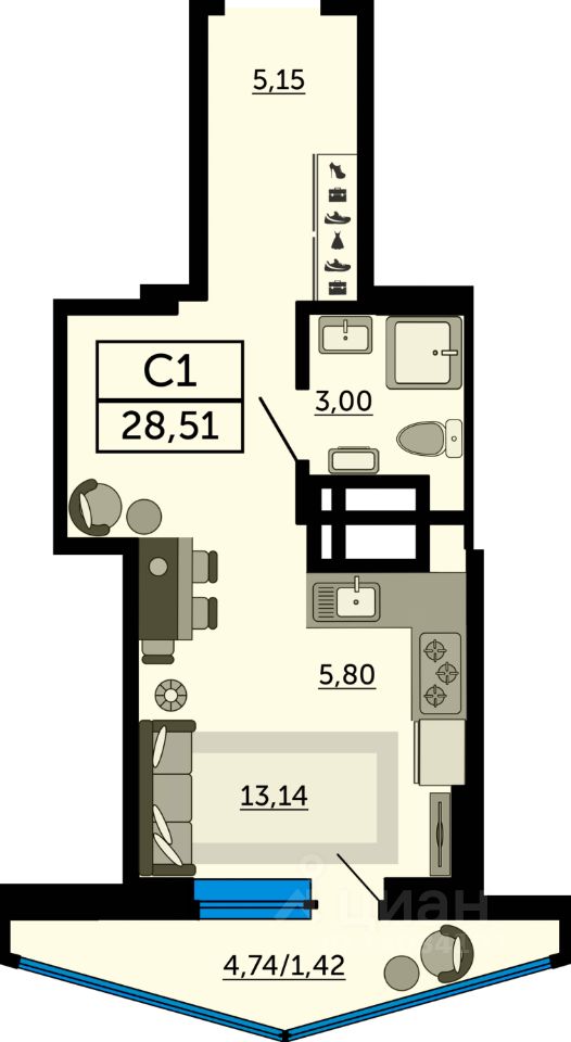 В продаже квартира-студия в новостройке, в стройварианте. Лучшее решение для молодой семьи, под сдачу или для инвестиций. Это современный вариант просторной студии с полноценной прихожей. Благодаря продуманному зонированию при входе достаточно места для зоны хранения вещей. Вся площадь будет использована максимально эффективно для работы и отдыха. Наиболее выгодная цена на этапе строительства. Успейте забронировать квартиру мечты напрямую от застройщика.
