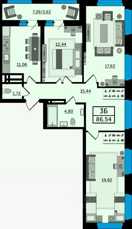 В продаже трехкомнатная квартира в новостройке, в стройварианте. Лучшее решение для жизни, под сдачу или для инвестиций. Большая квартира площадью от 85 квадратных метров, с раздельным санузлом, просторная прихожая, в которой есть место и для хранения вещей, и для дополнительной зоны отдыха. Также лоджия соединяет кухню и жилую комнату, что сейчас является одной из популярных тенденций в интерьере. Наиболее выгодная цена на этапе строительства. Успейте забронировать квартиру напрямую от застройщика.