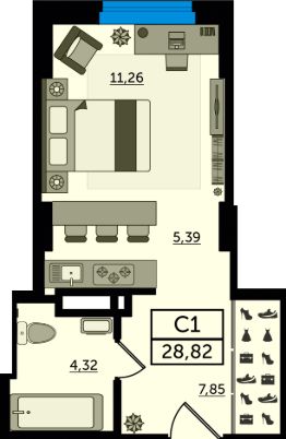 В продаже квартира-студия в новостройке, в стройварианте. Лучшее решение для молодой семьи, под сдачу или для инвестиций. Квартира-студия с нишей в коридоре под шкаф-купе - это отличное решение для данной планировки. В основной комнате будет достаточно места для спальной, кухонной и рабочей зон. Такое функциональное пространство подойдет на самый взыскательный вкус. Наиболее выгодная цена - сейчас. Успейте забронировать напрямую от застройщика.