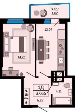 Жилая площадь14,2 м²
