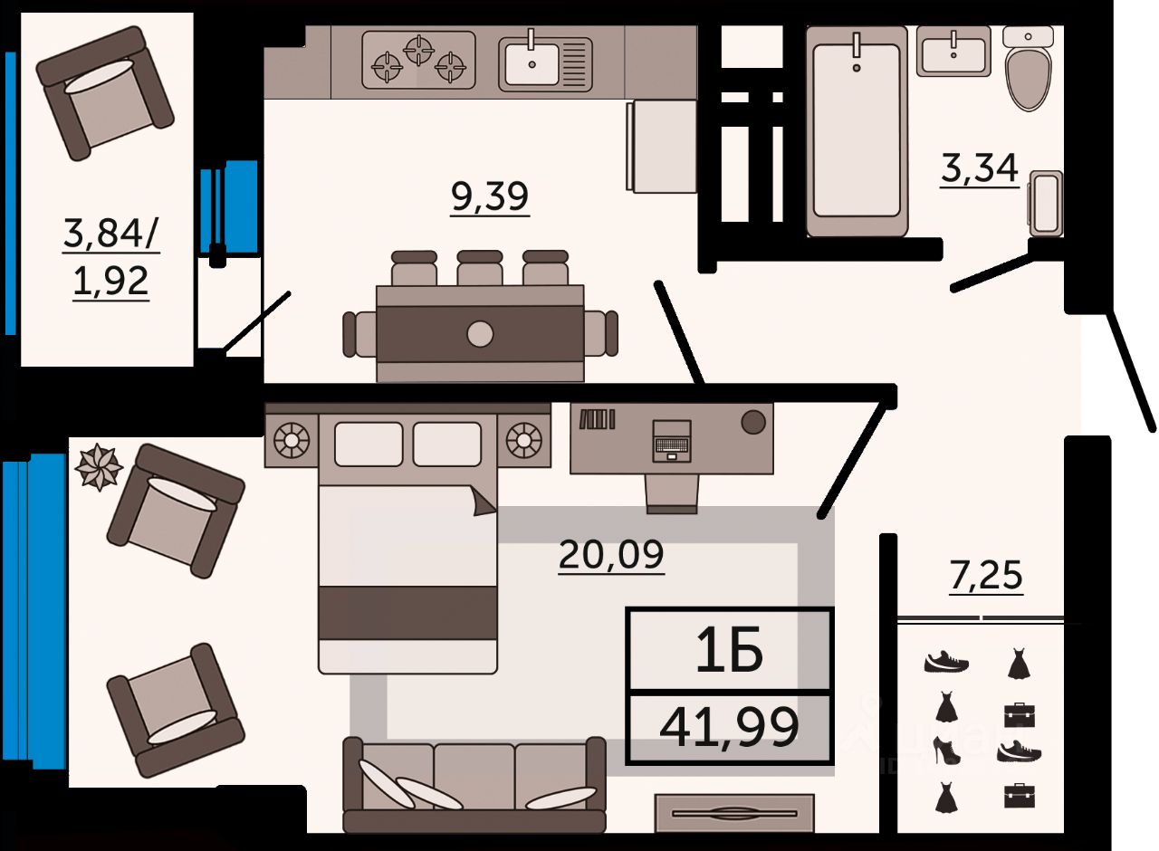 В продаже однокомнатная квартира в новостройке, в стройварианте. Лучшее решение для молодой семьи, под сдачу или для инвестиций. В данной планировке есть всё для воплощения любых дизайнерских решений. В просторной прихожей - место для хранения вещей, а в комнате спроектировано углубление с окном, здесь можно расположить рабочую зону или дополнительное место для отдыха. Наиболее выгодная цена на начальном этапе строительства. Успейте забронировать квартиру напрямую от застройщика.