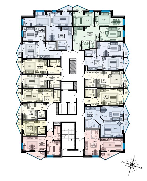 - 2 литера по 26 этажей.