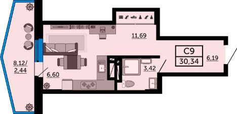 В продаже квартира-студия в новостройке. Лучшее решение для молодой семьи, под сдачу или для инвестиций. Эта квартира привлекает внимание своей функциональностью, уютом и современным планированием помещений. Прихожая переходит в просторную основную комнату, которая предоставляет вам полную свободу для создания зон по вашему вкусу. Из неё, в свою очередь, есть выход на большой балкон площадью около 8 квадратных метров.Успейте забронировать квартиру мечты напрямую от застройщика.