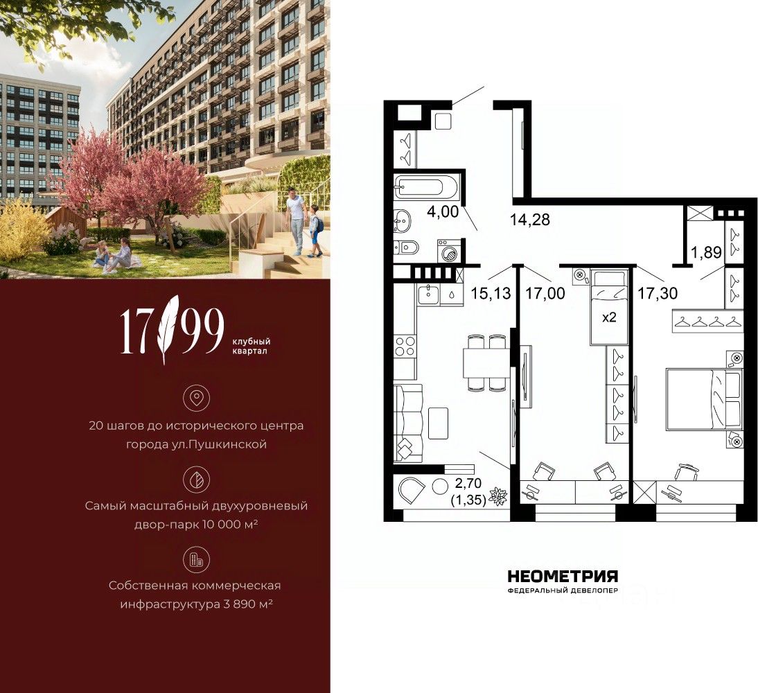 Продается квартира в клубном квартале "1799". Это истинный бизнес-класс в историческом центре Ростова. Особое сочетание уникальной локации и среды, где хочется создавать ту жизнь, которая подходит вам. Где каждое мгновение становится частью семейной коллекции лучших моментов.