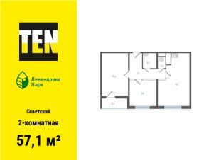 Общая площадь57,1 м²