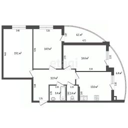 Планировка квартиры функциональна и предполагает возможность организации изолированных зон для отдыха и работы.