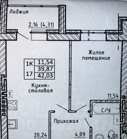 - Общая площадь: 42 м²