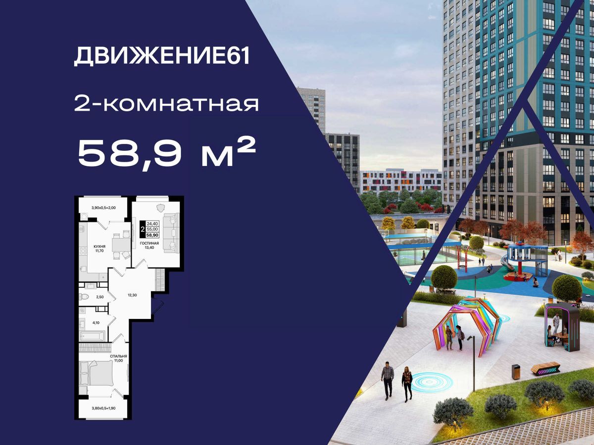 2-комнатная квартира в новом квартале "Движение 61" | Прямая продажа от ЮгСтройИнвест | Локация, выгода, качество!