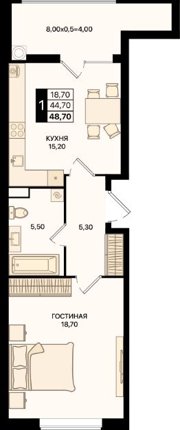 В продаже 1-комнатная квартира — комфортный формат с продуманным пространством.