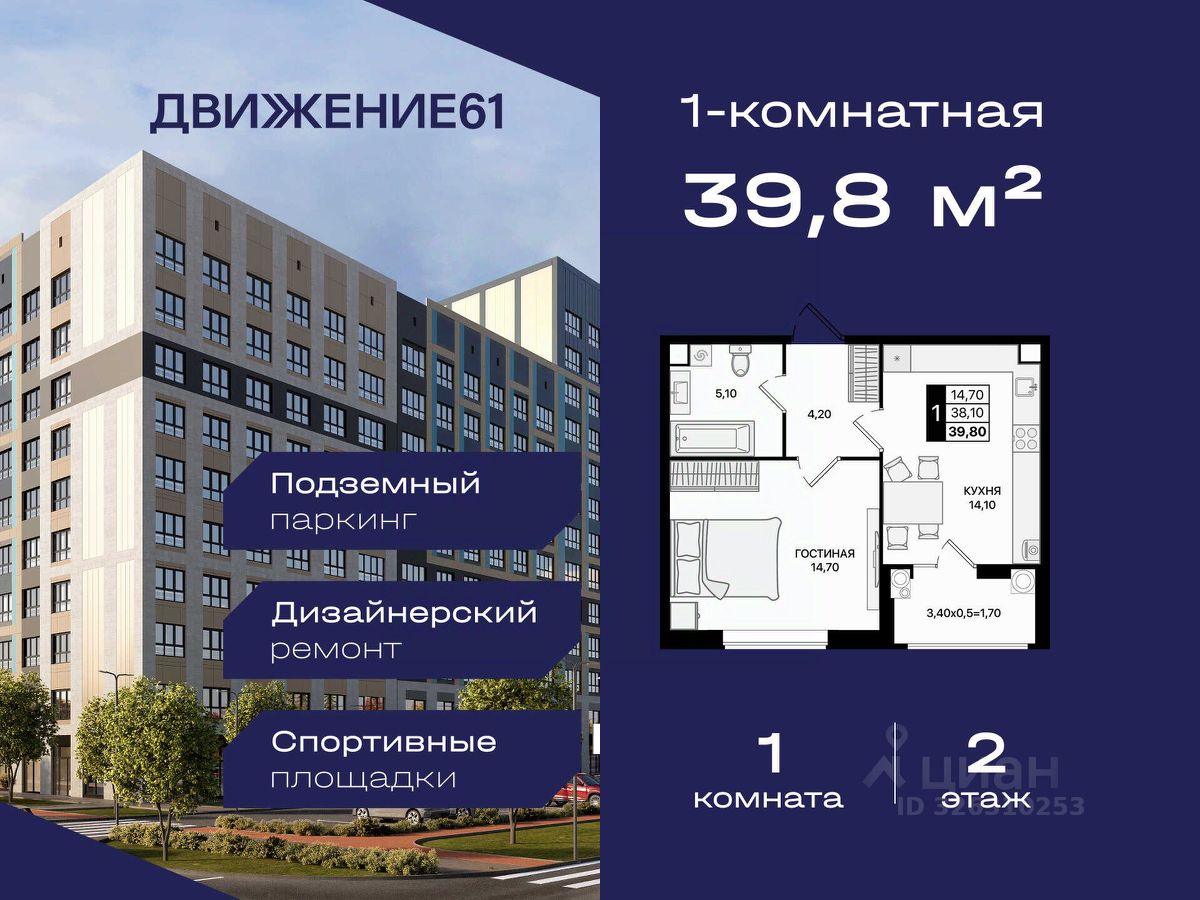 Если вы ищете современную, удобную и доступную квартиру в динамично развивающемся районе — 1-комнатная квартира в "Движение61" идеально подходит как для жизни, так и для сдачи в аренду.
