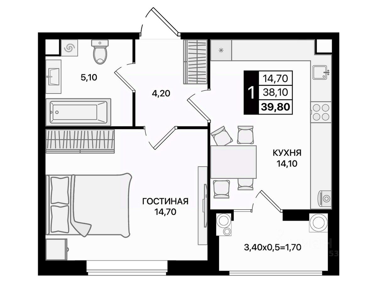 1-комнатная квартира в "Движение61" — удобный старт, разумная цена и благоприятный район для жизни!