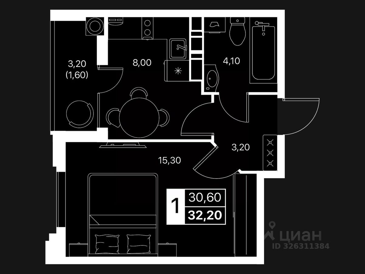 Общая площадь32,2 м²
