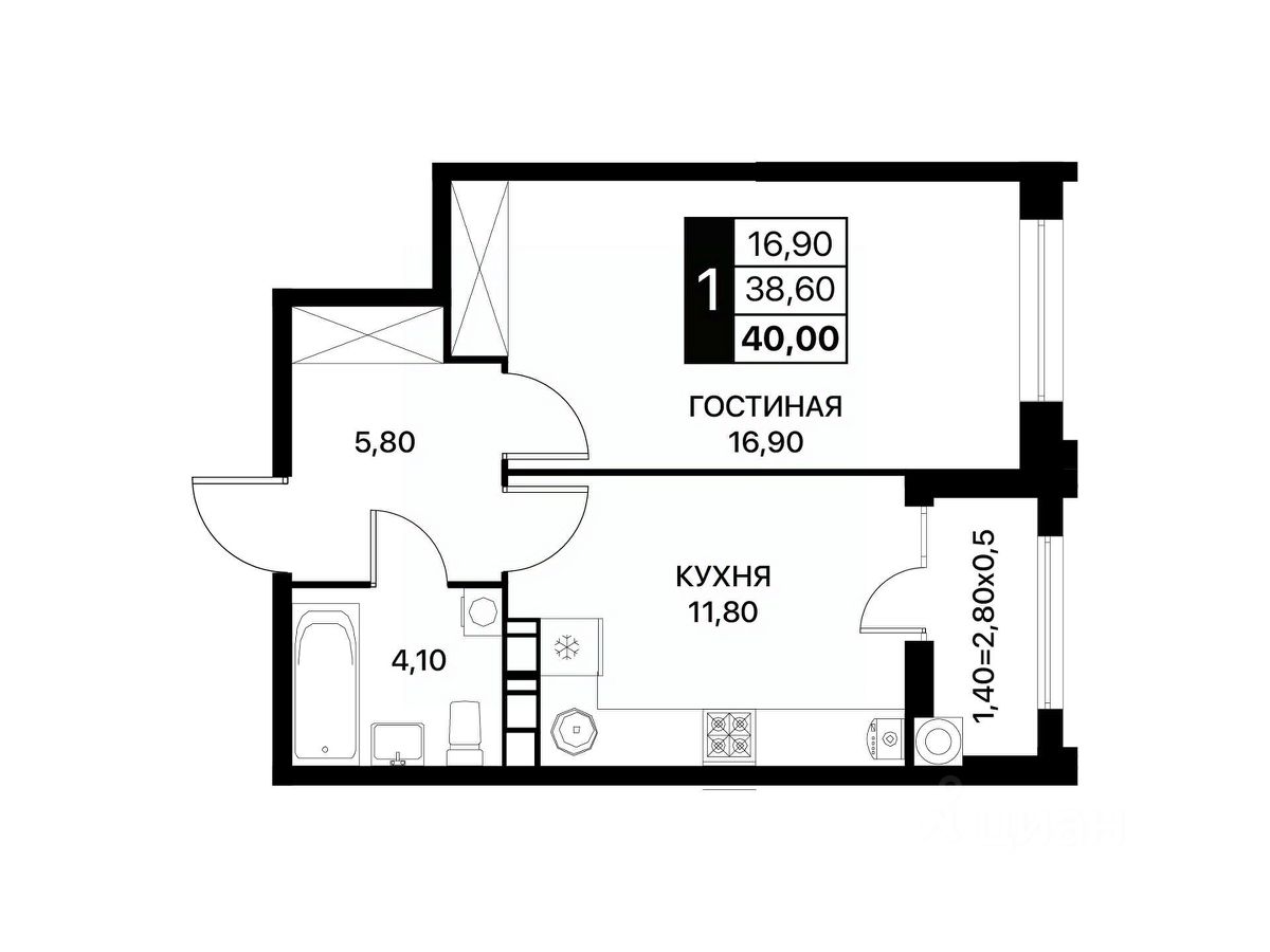 Оптимальный формат для комфортной жизни, сдачи в аренду или покупки первой квартиры.