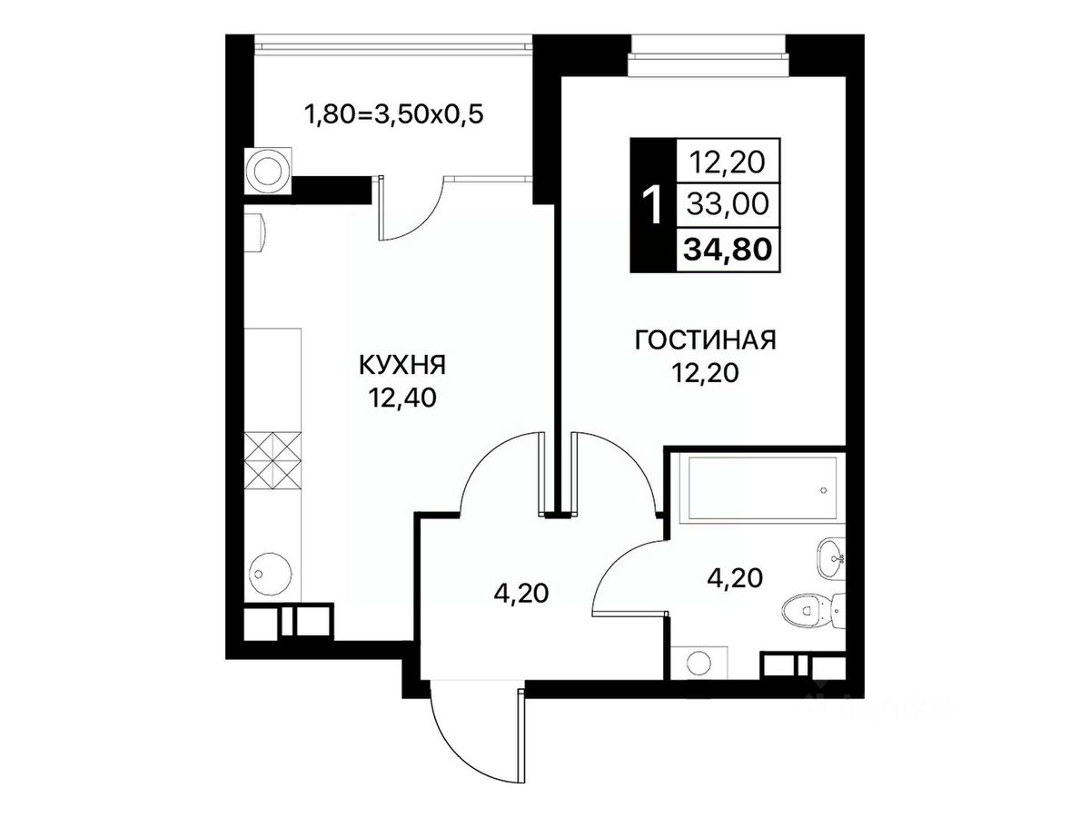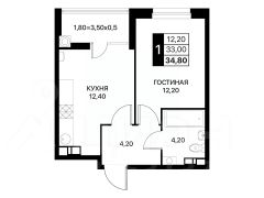 Общая площадь34,8 м²