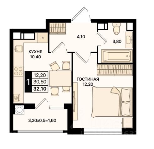 32,6 м²