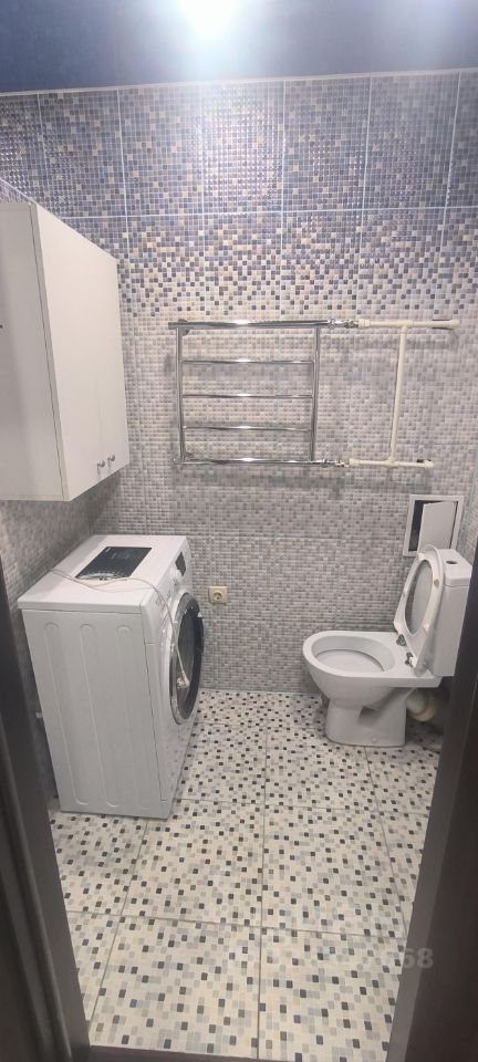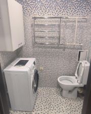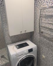 - В санузле: отстроенная душевая с тропическим душем, унитаз, стиральная машина Аristоn (требует ремонта-течет бак), навесной шкафчик. Отделка санузла - плитка.