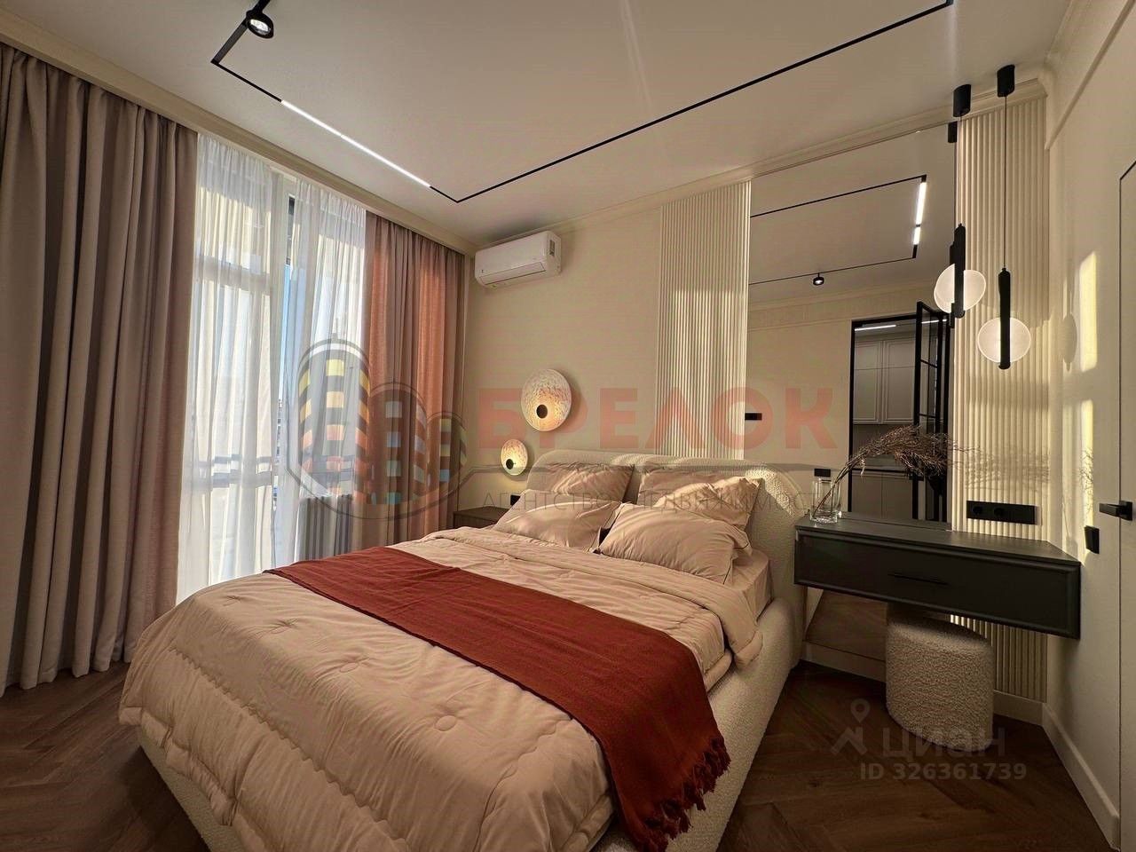 Изюминка квартиры спальная комната, обустроена всем необходимым и имеет свою гардеробную и выход на балкон, несколько зон освещения.