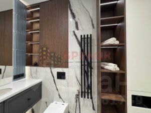 По всей квартиры заменены радиаторы на дизайнерские, по всей квартиры имеются панно из зеркал и двери скрытого монтажа, стены крашенные,так же установлена система от протечки воды. В санузле установлена стиральная и сушильная машинка, три уровня освещения и большое количество мест хранения, на стенах Итальянский керамогранит.