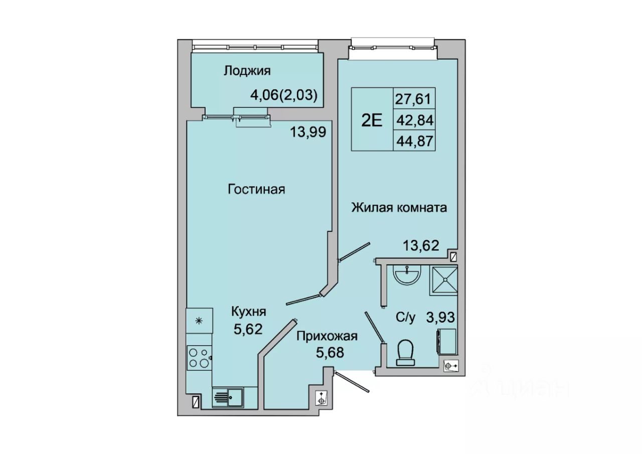 Общая площадь44,87 м²