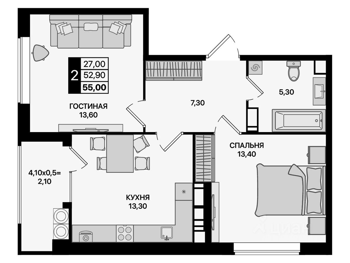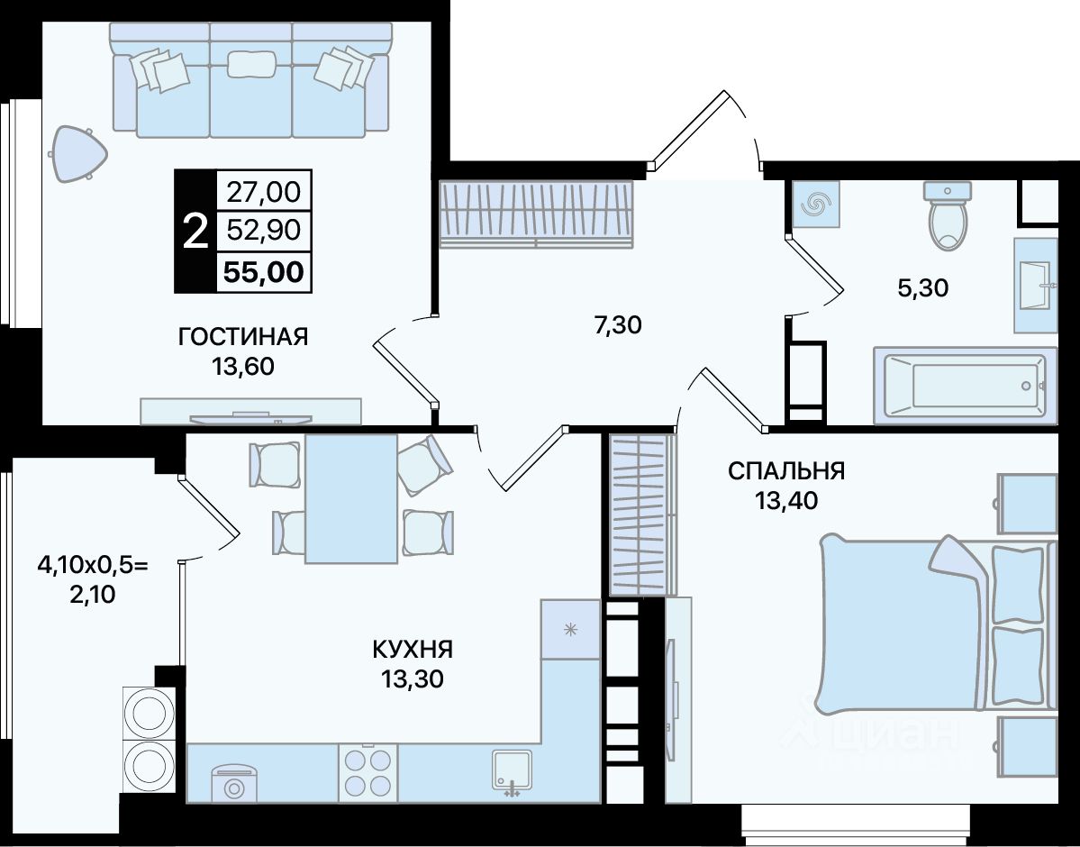Общая площадь55 м²