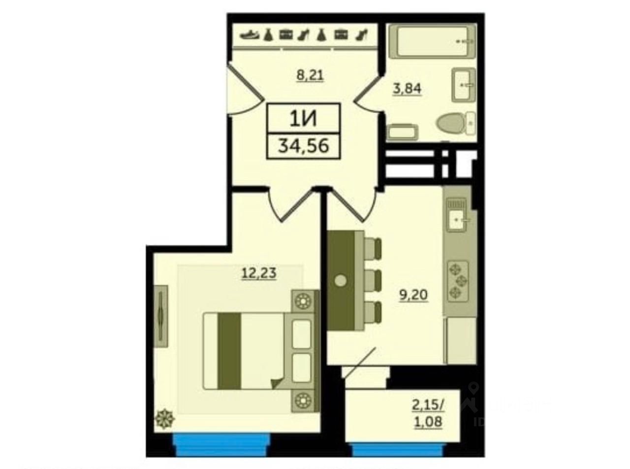 Продается светлая однокомнатная квартира в живописном районе ЖК Легенда Ростова по адресу Россия, Ростов-на-Дону, проспект Михаила Нагибина, 40Б. Общая площадь квартиры составляет 34.56 кв. м, что включает в себя просторную кухню площадью 9.2 кв. м и жилую площадь 12.23 кв. м. Квартира расположена на 8 этаже из 23, с окнами, выходящими во двор, что гарантирует тишину и спокойствие.