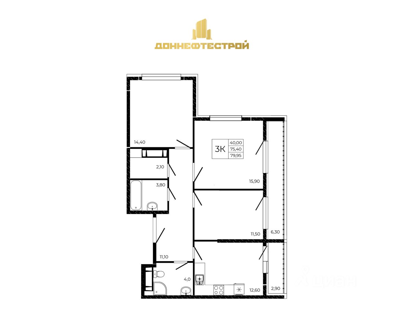 Общая площадь79,95 м²