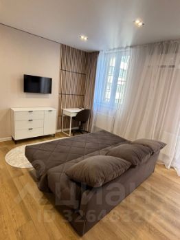 Уютная квартира-студия с дизайнерским ремонтом, оборудованная всей необходимой мебелью и современной бытовой техникой. Удобный ортопедический диван. Балкон застеклен. Всего 7 квартир на этаже. Два лифта. Окна в тихий двор.