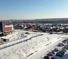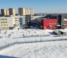 Из окна видно школу и садик.