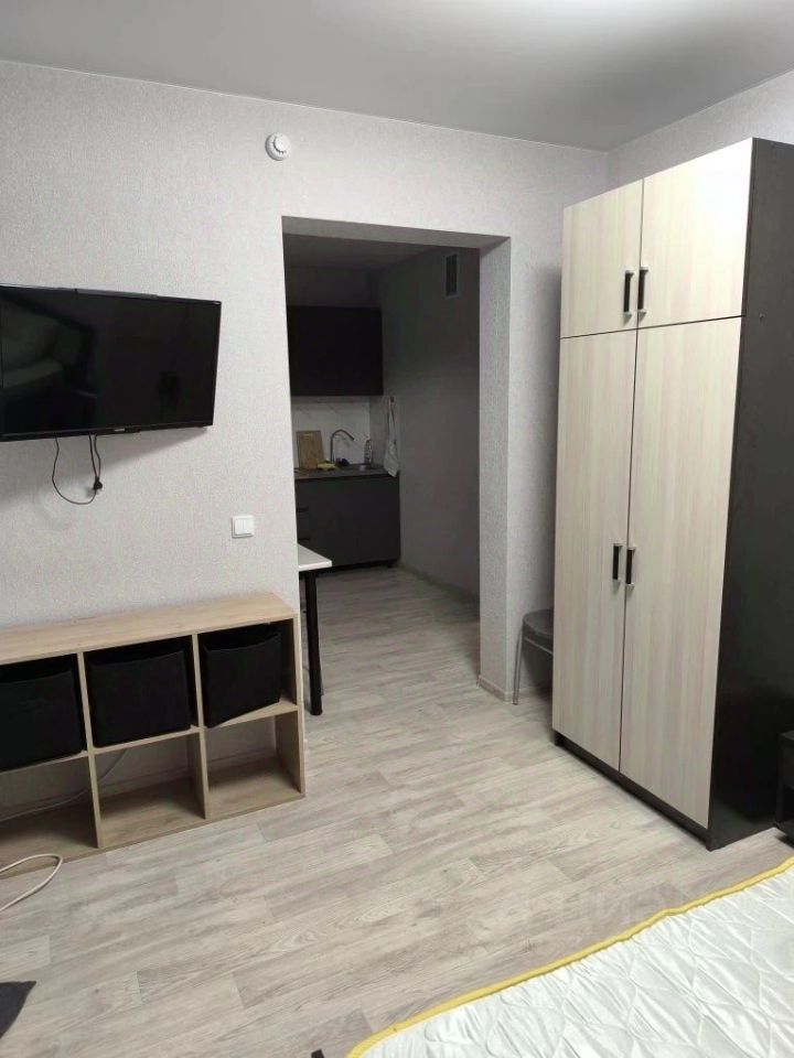 Продается уютная однокомнатная квартира с косметическим ремонтом на девятом этаже панельного дома. Из окон открывается приятный вид на улицу. В квартире совмещенный санузел, оборудованный современной сантехникой. Просторная кухня оснащена необходимой мебелью и техникой, включая холодильник. В комнате установлен вместительный шкаф и телевизор.