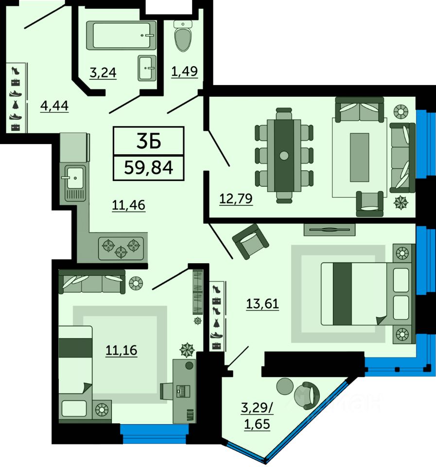 В продаже трехкомнатная квартира в новостройке. Лучшее решение для жизни, под сдачу или для инвестиций. Просторная трёхкомнатная квартира с большой прихожей, отдельным санузлом и гардеробной. Благодаря универсальному размеру комнат вы можете воплотит все свои оригинальные дизайнерские идеи. Дополнительным плюсом станет вид из больших окон на мост Стачки и реку Дон. На этапе строительства самые выгодные предложения. Успейте забронировать идеальное место для жизни напрямую от застройщика.
