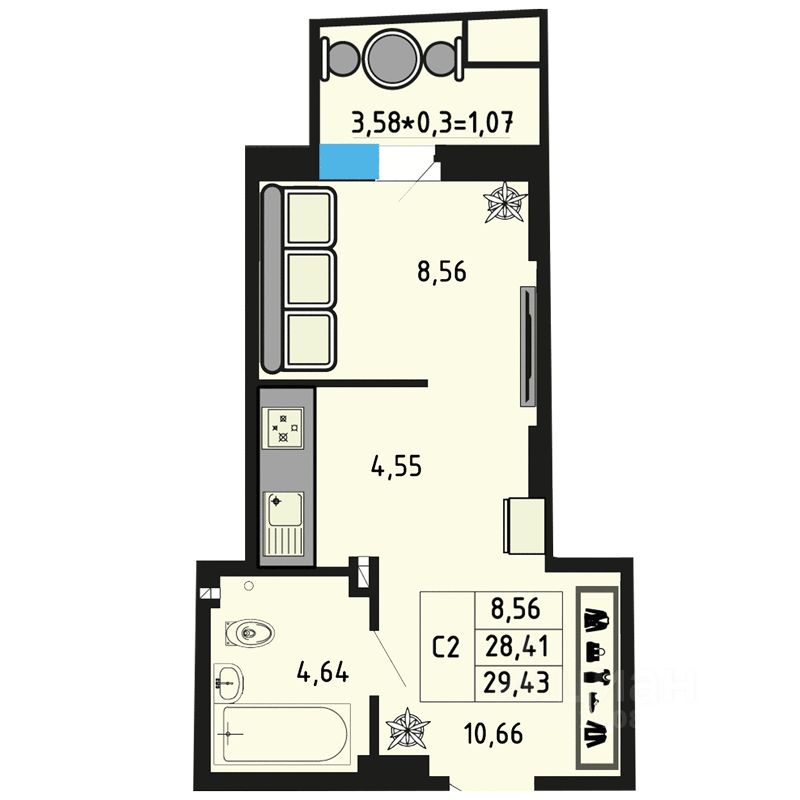 В продаже квартира-студия в новостройке. Лучшее решение для молодой семьи, под сдачу или для инвестиций. В данной планировке выделено место в прихожей зоне для хранения вещей, а в основной комнате для кухни. Благодаря этому вы сможете разместить всё необходимое с максимальным комфортом. А уютный балкон может стать дополнительным местом для отдыха. Успейте забронировать квартиру мечты напрямую от застройщика.