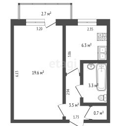 Планировка практична и включает изолированную жилую комнату 19,2 м², отдельную кухню 6 м² и совмещенный санузел. Высота потолков 2,7 метра, окна выходят в спокойный двор, обеспечивая тишину. В доме функционирует пассажирский лифт, организована наземная парковка.