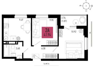 Продаётся 2-комнатная квартира в строящемся доме (Литер 11.3), срок сдачи: II-кв. 2028, общей площадью 41.94 кв.м., на 5 этаже.