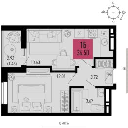 Продаётся 1-комнатная квартира в строящемся доме (Литер 11.4), срок сдачи: II-кв. 2028, общей площадью 34.5 кв.м., на 5 этаже.