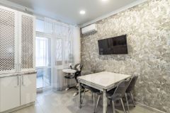 Интерьер выполнен в соответствии с современным дизайн-проектом, что обеспечивает высокий уровень комфорта и эстетики. В стоимость входит вся мебель и бытовая техника, что является дополнительным преимуществом для покупателя. Установленная система теплых полов повышает энергоэффективность и комфорт проживания. Район обладает развитой инфраструктурой, включающей образовательные учреждения (школы и детские сады), торговые точки, а также удобный доступ к общественному транспорту, что делает местоположение квартиры особенно привлекательным.