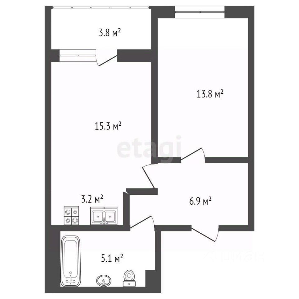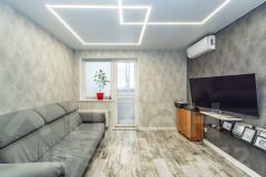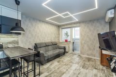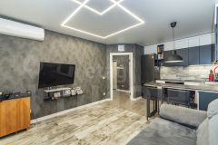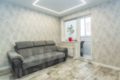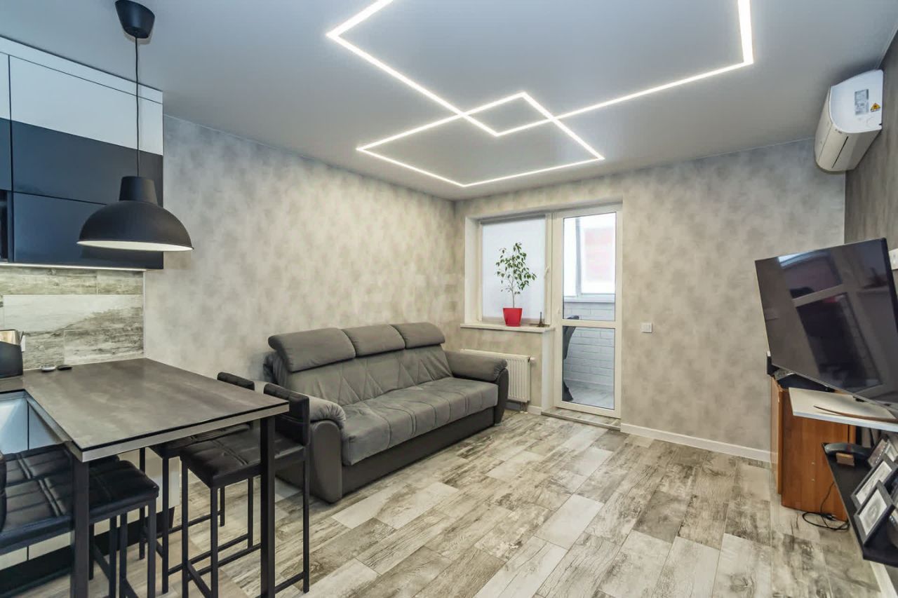 Планировка квартиры позволяет с легкостью адаптировать пространство под свои нужды и предпочтения. Большие окна наполняют комнату естественным светом, создавая атмосферу уюта и комфорта, а также визуально увеличивают пространство.